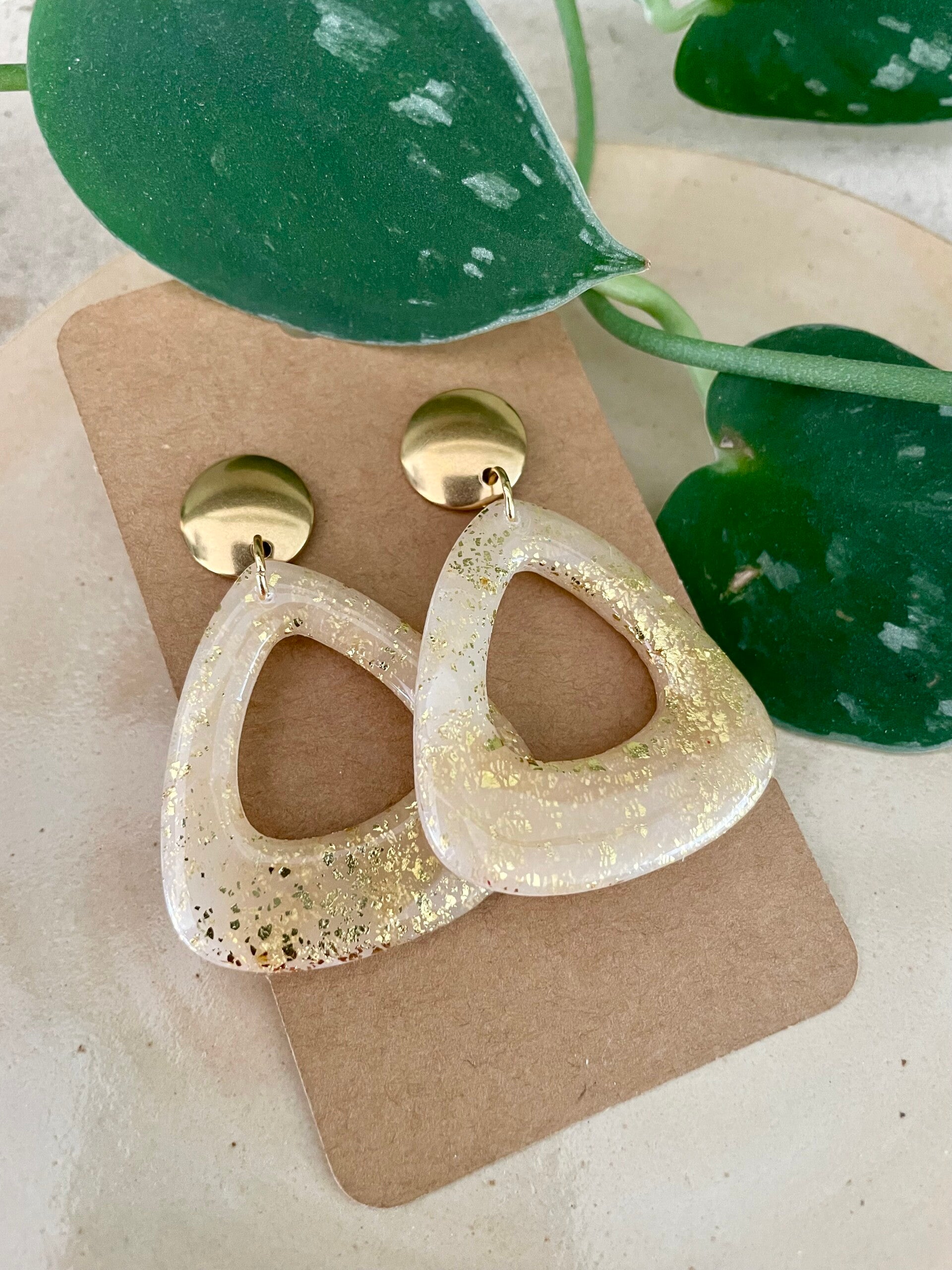 Al onze oorbellen zijn gemaakt van polymeer klei en afgewerkt met onderdelen van roestvrijstaal. Hierdoor zijn ze licht van gewicht en kleurvast. De maat is 5 cm lang en 3,5 cm breed.